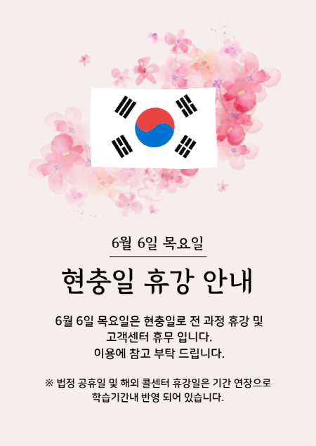 현충일 휴강 및 휴무 안내