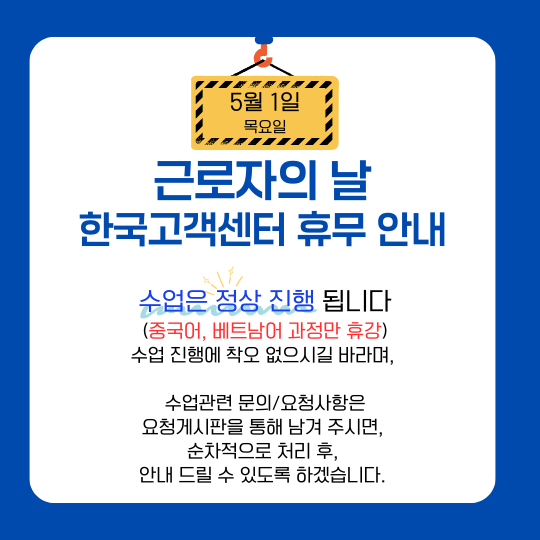 5/1(목) 고객센터 휴무 안내